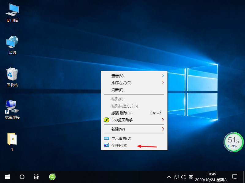 1、首先我们右键桌面空白处,选择个性化选项。