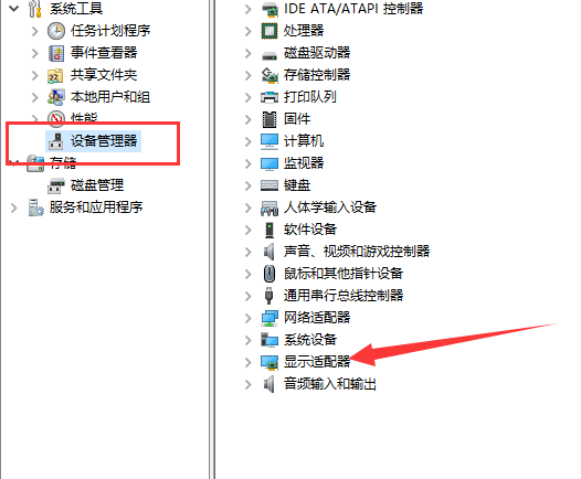 1、右击此电脑选择管理。选择设备管理器,右侧找到并展开显示适配器。