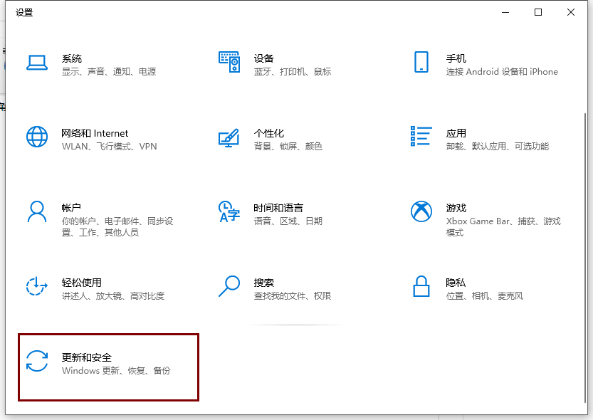 1、win+i打开电脑设置,然后往下滑找到更新与安全。