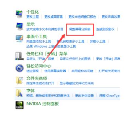 4、进入该界面后找到“调整屏幕分辨率”并点击进行下一步操作。