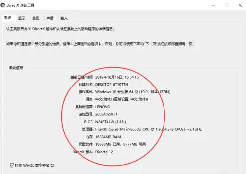 2.这个时候就可以打开系统自带的诊断工具,这个时候就可以看到详细的系统相关的信息了。如图所示系统信息。