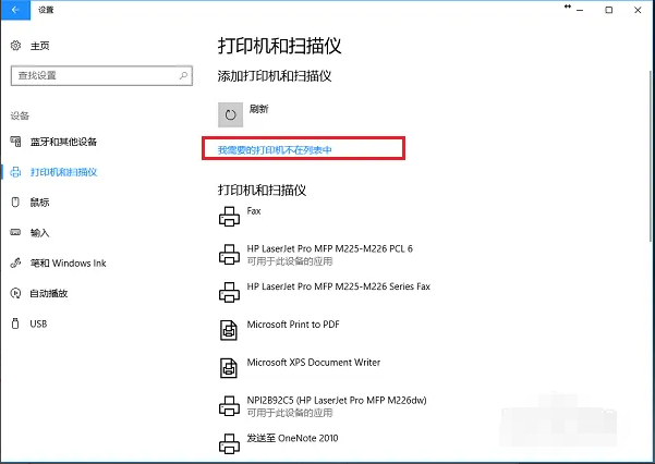 7、如果打印机没有搜索到,点击“我需要的打印机不在列表中”。