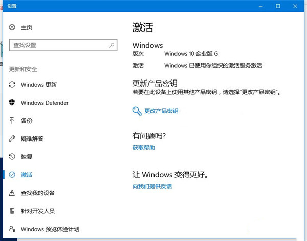 3.打开“设置-更新和安全-激活”,就可以看到win10企业版已经完成激活了。