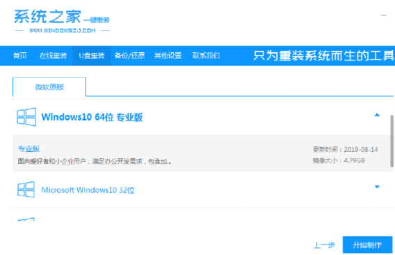 1、惠普笔记本怎么重装系统win10,下载安装系统之家一键重装系统工具,然后插入U 盘打开软件开始制作启动 U 盘。