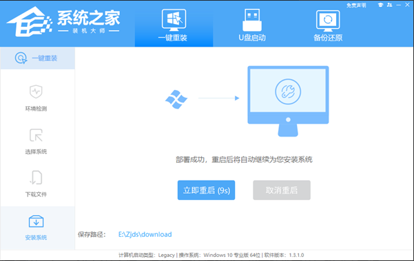 5、下载完成之后,等待环境部署完毕之后,点击立即重启。