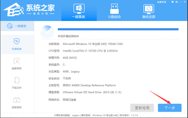 2、工具将会自动检测当前电脑系统的相关信息,检测完成之后,点击下一步。