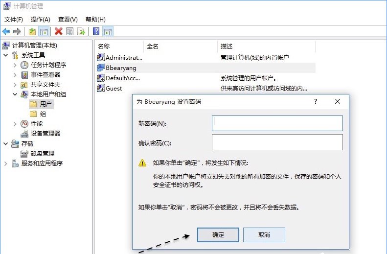 5、接下来请直接点击“确定”按钮,即为当前用户设置一个空密码,然后无需输入密码即可自动登录。