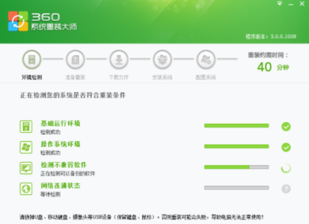 4、选择360系统重装大师上的重装环境检测功能。
