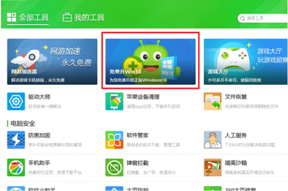 2、找到免费升win10工具进入。