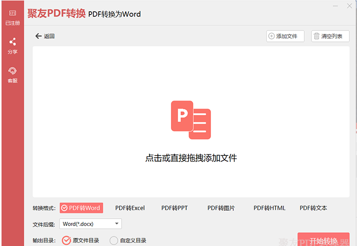 4、点击选中“pdf转word”,进入到PDF文件的添加页面;