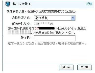 5.选择解除方式:点击QQ令牌,弹出QQ令牌验证框。