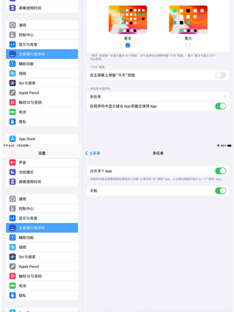小编提示:此功能需要开启多任务功能,默认为开启状态,你可以进入设置-主屏幕与程序坞-多任务,查看是否开启允许多个APP功能。