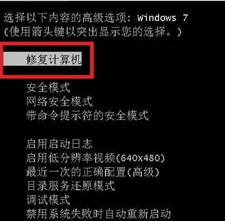 1、重启电脑按住F8,选择“修复计算机”。
