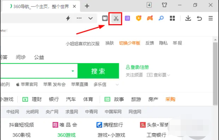 2、在打开的网页上找到工具栏,工具栏里找到见到图标进行截图。