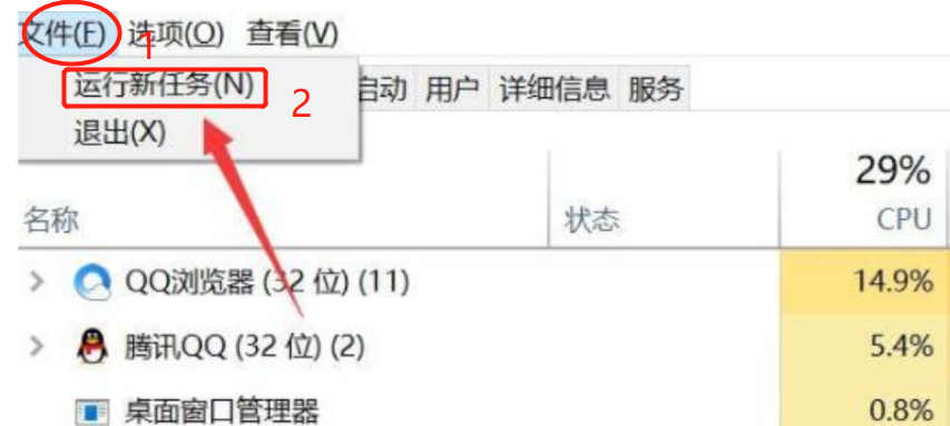 2.点击左上角的“文件”---再继续点击“运行新任务”;