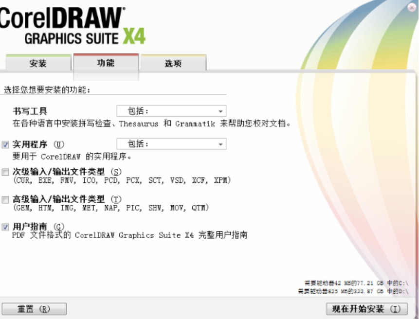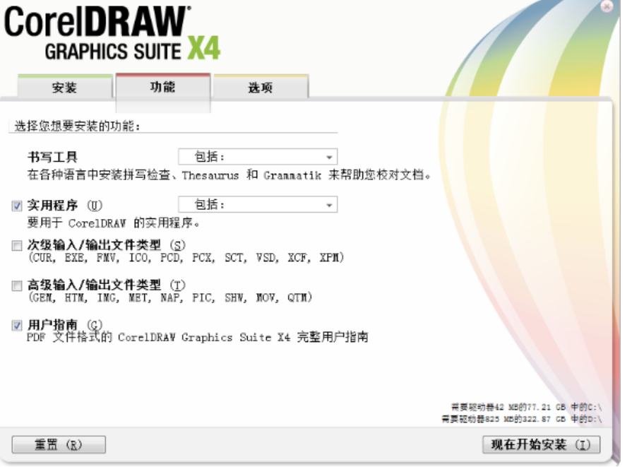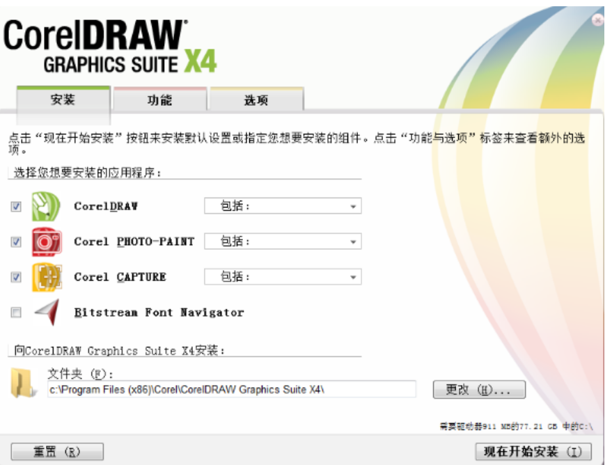 在安装界面里先把CorelDraw X4安装目录单击【更改】设置即可;