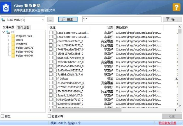Glary Undelete 也是有免费版和专业版,支持 FAT 和 NTFS 文件系统。对文件类型没有限制,支持对各种文件进行恢复,筛选功能强。