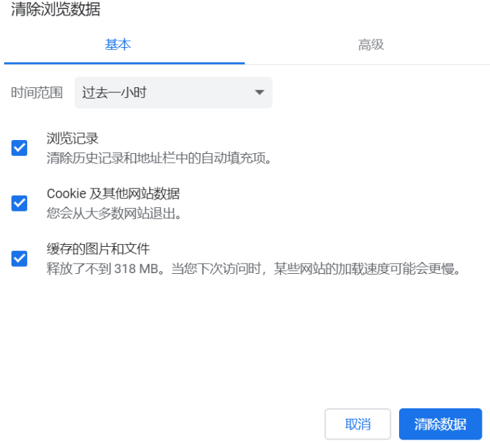 2.点选需要清除的浏览数据,点击【清除数据】这样就能清理浏览器缓存了。
