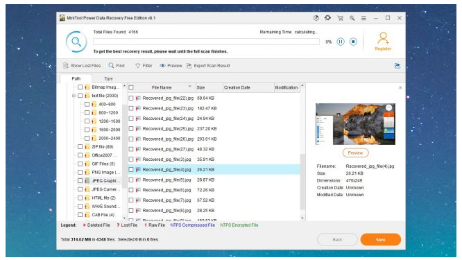这个版本有免费的,但也有付费版本,免费的只能恢复1GB的数据,不能保存扫描结果以便以后使用。用户可以将扫描限制为特定的文件类型,MiniTool Power能够从用户甚至无法看到的分区中获取文件,并且支持包括光学介质在内的可移动驱动器。扫描速度非常快,搜索结果可以更容易地找到正在寻找的内容。