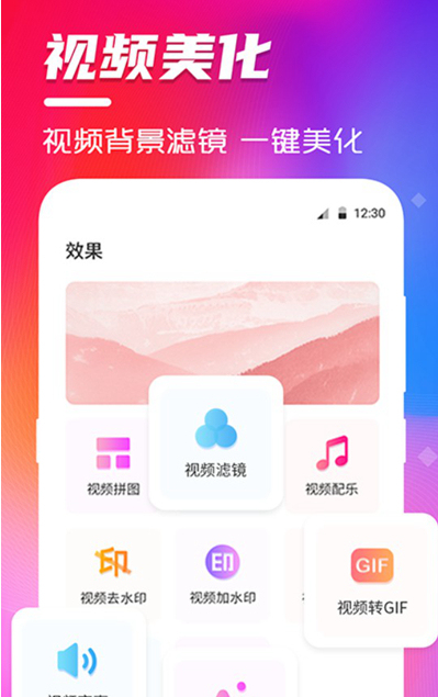 这款软件拥有强大的视频剪辑功能,可以轻松完成视频剪切、拼接、配乐以及去水印等操作,而软件中还带有全能的视频美化功能,可以将制作出来的视频放入相册中。