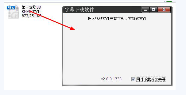 1、下载并运行电影字幕下载软件,把没有字幕的电影拖进电影字幕下载软件的框里。