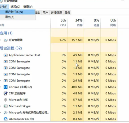 2、打开任务管理器之后点击“文件”,点击“运行新任务”,然后输入explorer.exe,再点击确定就可以了。