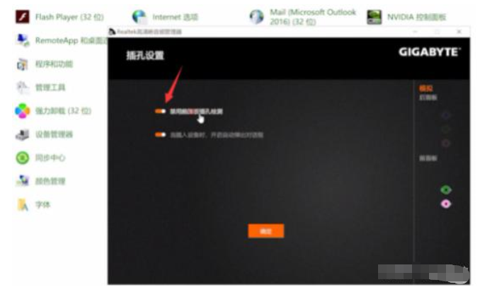 3、点击设置,取消勾选禁用前面板插孔检测即可。(不同的电脑品牌音频管理器会有差异,下面小编分享了两种品牌的操作,大家以自己电脑品牌的操作为主)