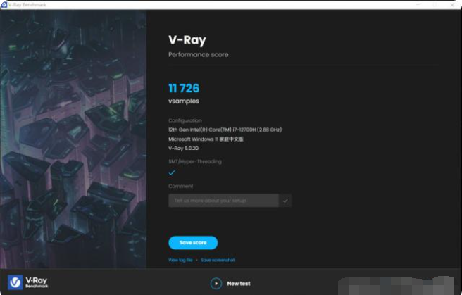 V-Ray 5 Benchmark也是测试处理器渲染性能的工具,OMEN暗影精灵8 Plus得分为11726vsamples。