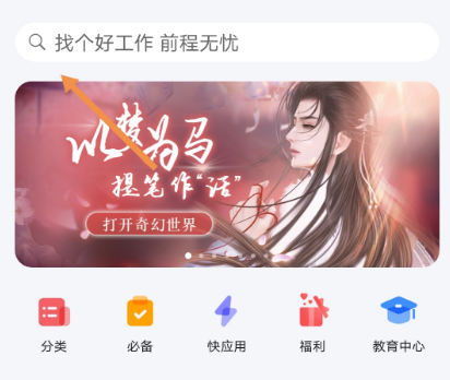 2、当来到"应用市场"首页之后,点击上方“放大镜”即可。