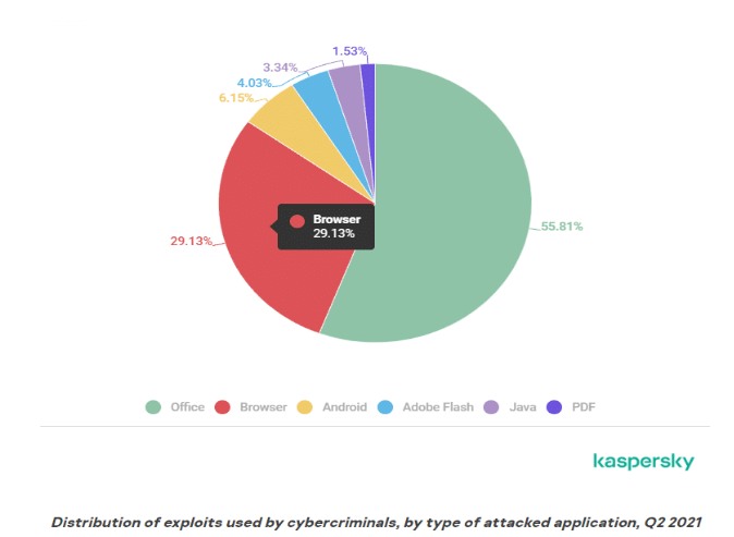 (九)安全与隐私浏览器是恶意软件最常见的目标之一。29.13%的 PC 利用攻击攻击应用程序攻击浏览器。