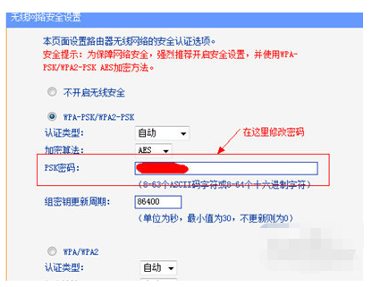 3、然后在无线安全中PSK密码一栏输入需要修改的密码,最后点击保存即可。