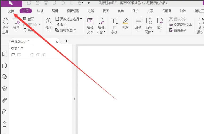 1、打开福昕PDF阅读器之后,点击左上角的“文件”选项卡。
