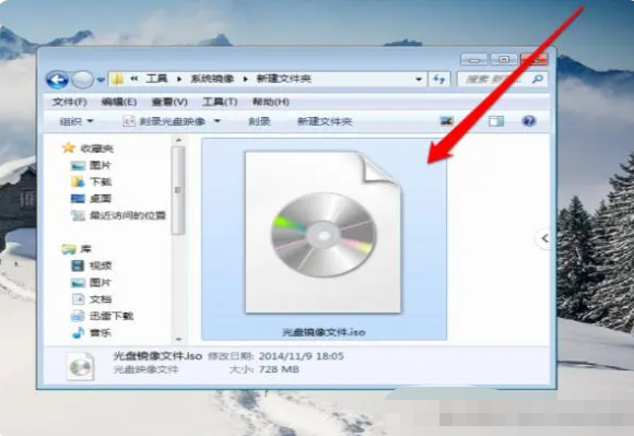 1.首先我们在桌面上创建一个新的文件夹,接着将光盘镜像文件放置到文件夹中。