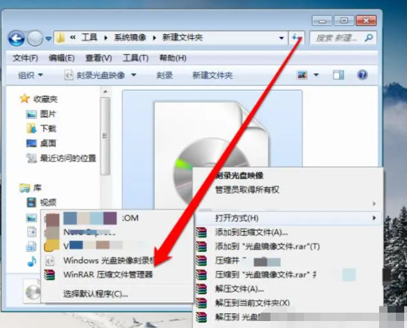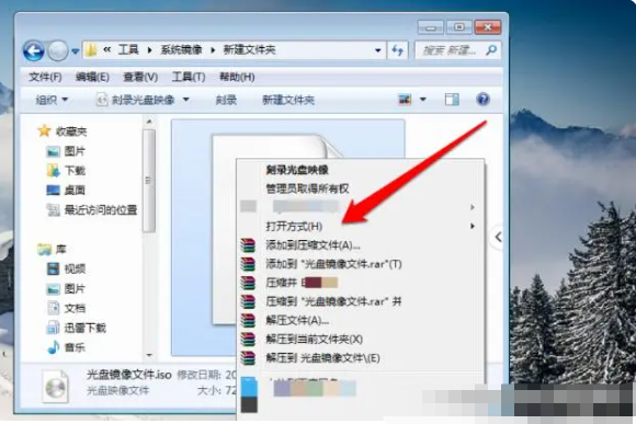 3.我们选中光盘镜像文件之后,使用鼠标右键点击弹出菜单选择打开方式。