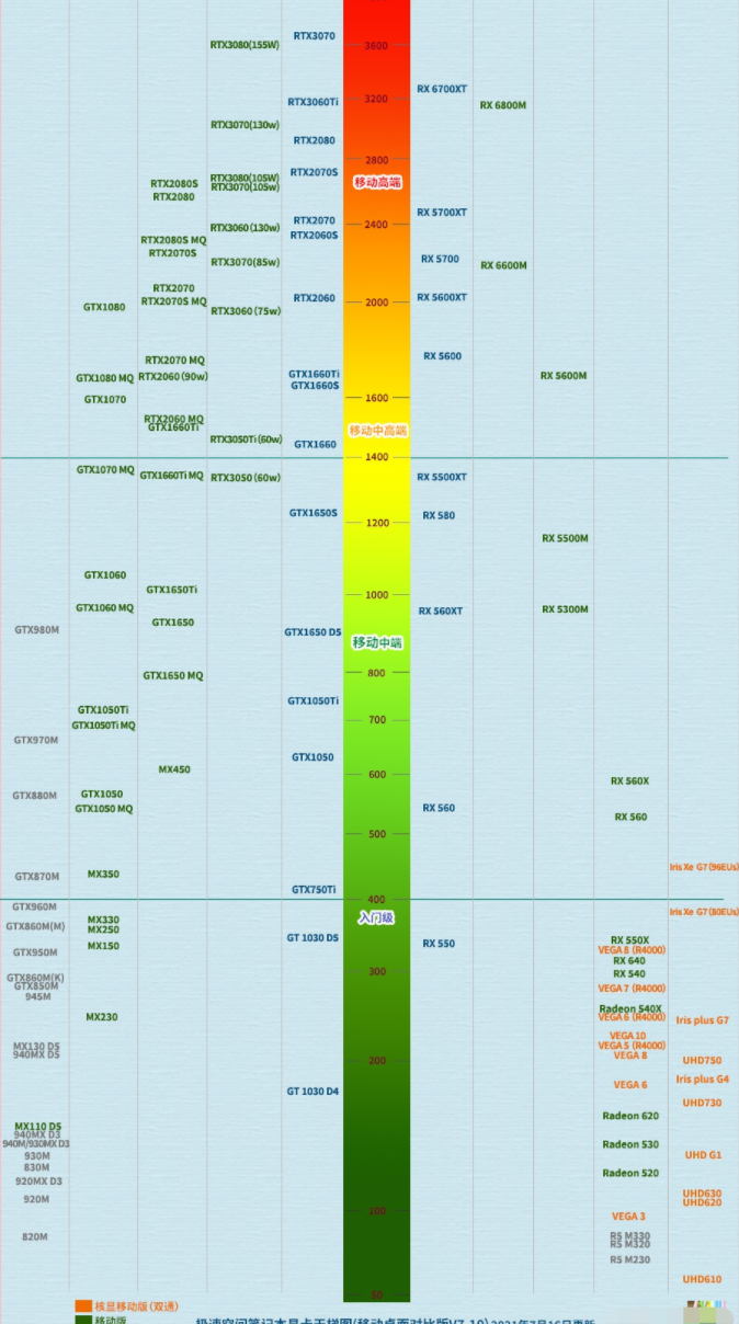 笔记本显卡排行天梯图2022年最新分享
