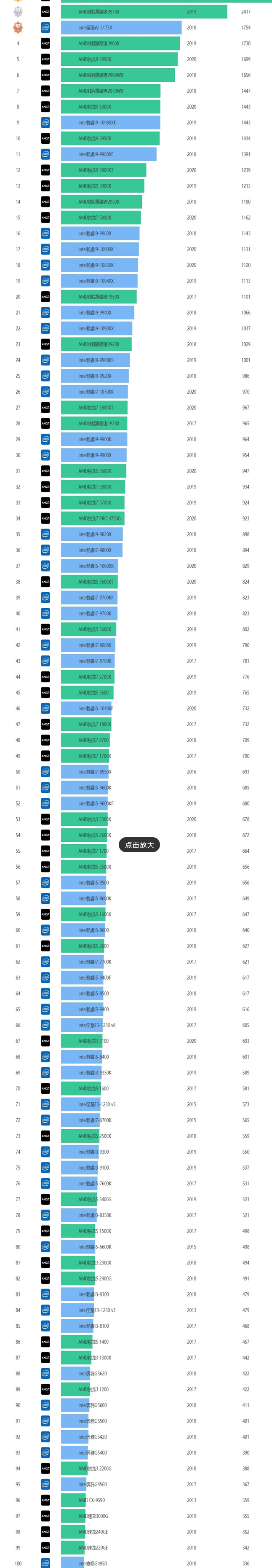 台式机CPU排行榜天梯图一览
