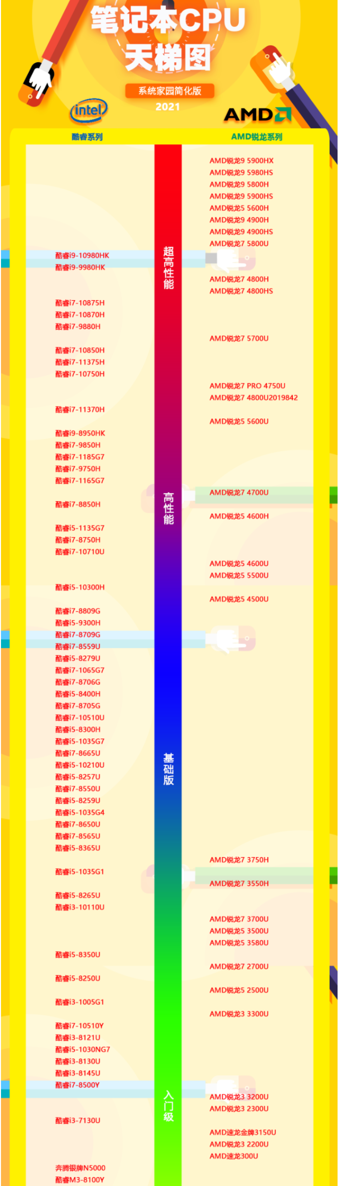 电脑核心处理器cpu性能的好坏直接影响了电脑的整天性能好坏情况,有网友想了解目前笔记本cpu排行情况,方便进行挑选.下面小编就给大家分享下笔记本cpu排行天梯图2021新版作为参考.