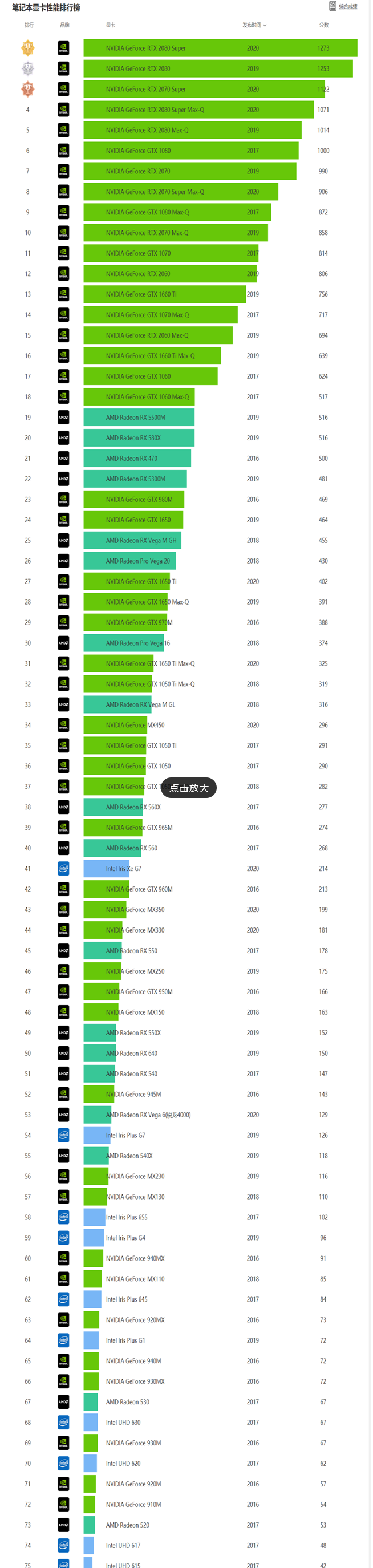 天梯图是按照显卡的综合性能值排序的,随着科技的发展,这个“综合性能值”的算法也需要与时俱进.现在已经是11月了,所以我们来看看2021年11月笔记本显卡天梯图是什么的介绍吧.