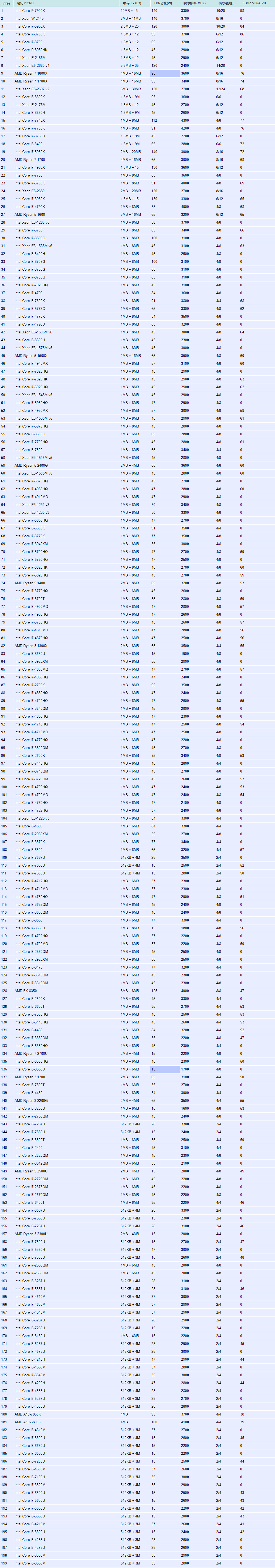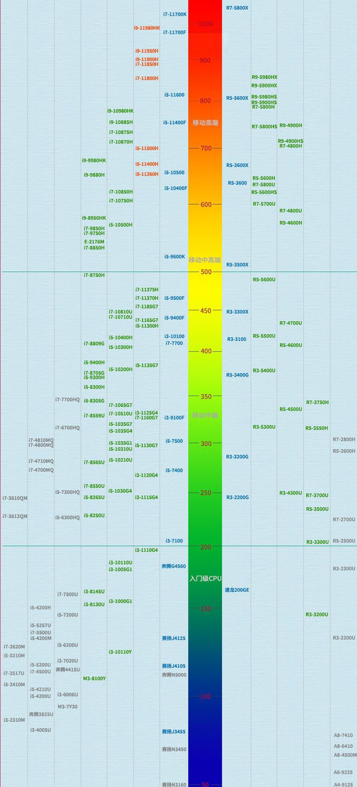 2021年6月笔记本cpu排行天梯图的详细介绍
