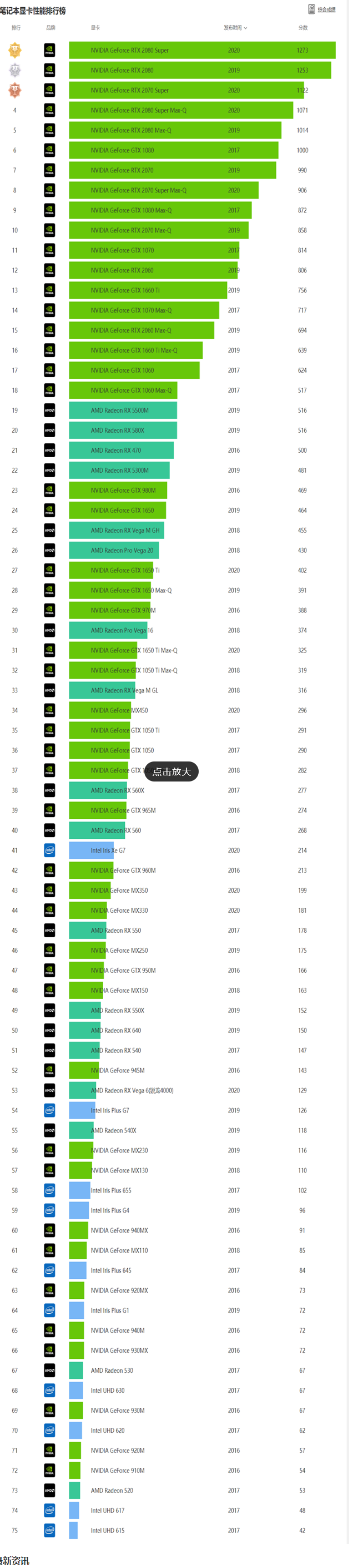 笔记本电脑显卡天梯图2021新版