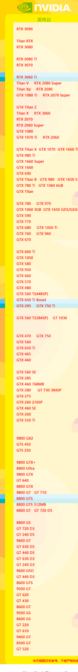 2021新版英伟达显卡天梯图介绍