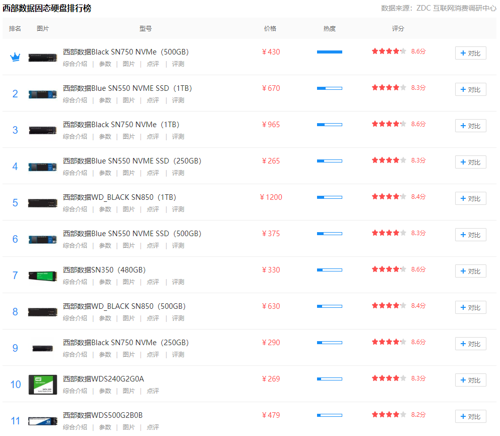 西部数据固态硬盘排行榜榜单