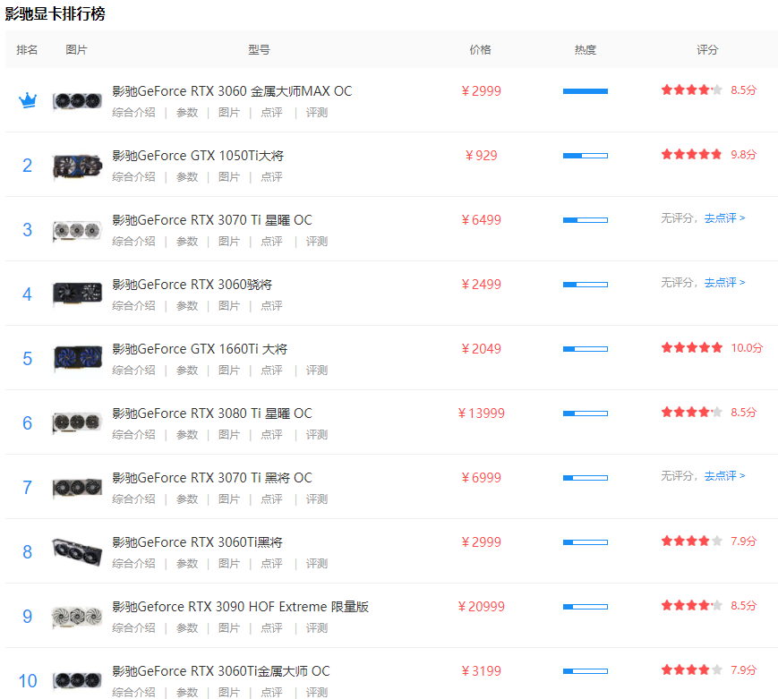 2021/08/14 影驰显卡排行榜影驰显卡哪款好用影驰显卡热门型号有哪些