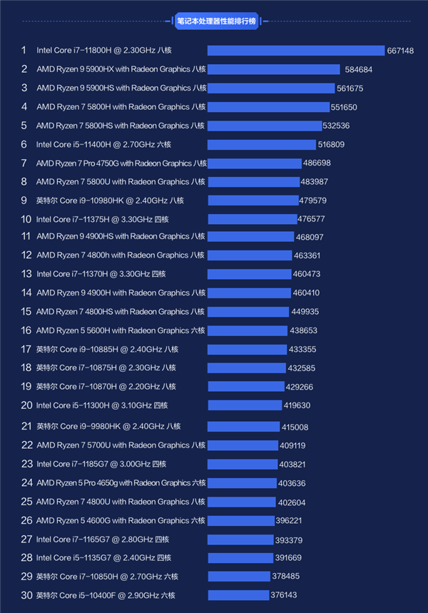 2021全新笔记本cpu排行天梯图