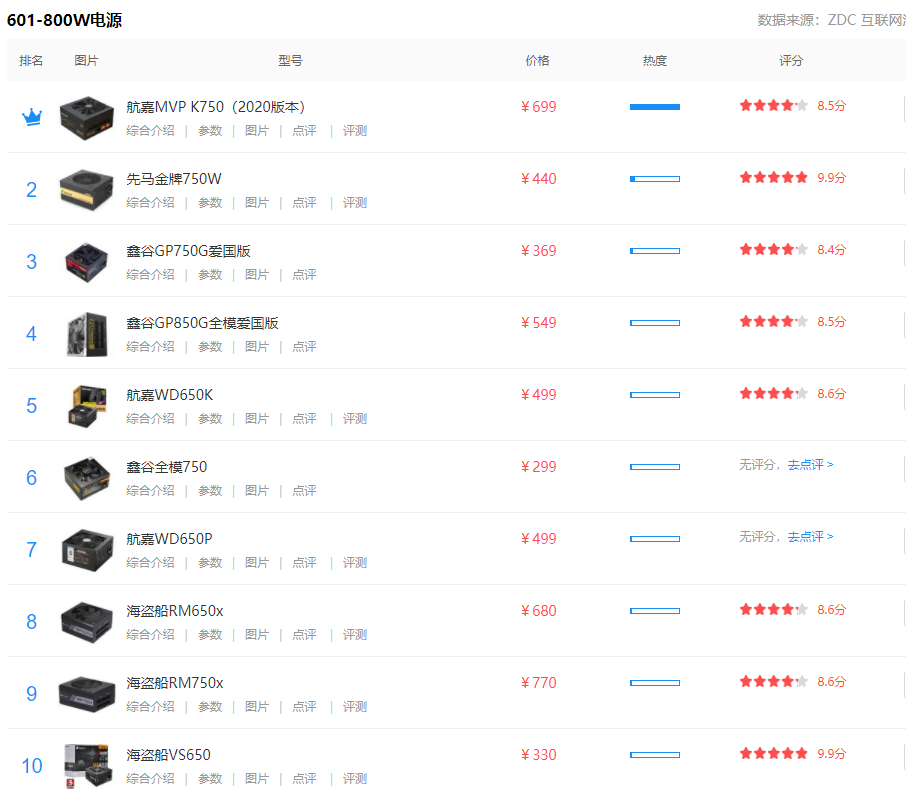 2021/08/13 601-800W电源排行榜601-800W电源601-800W电源哪些比较好