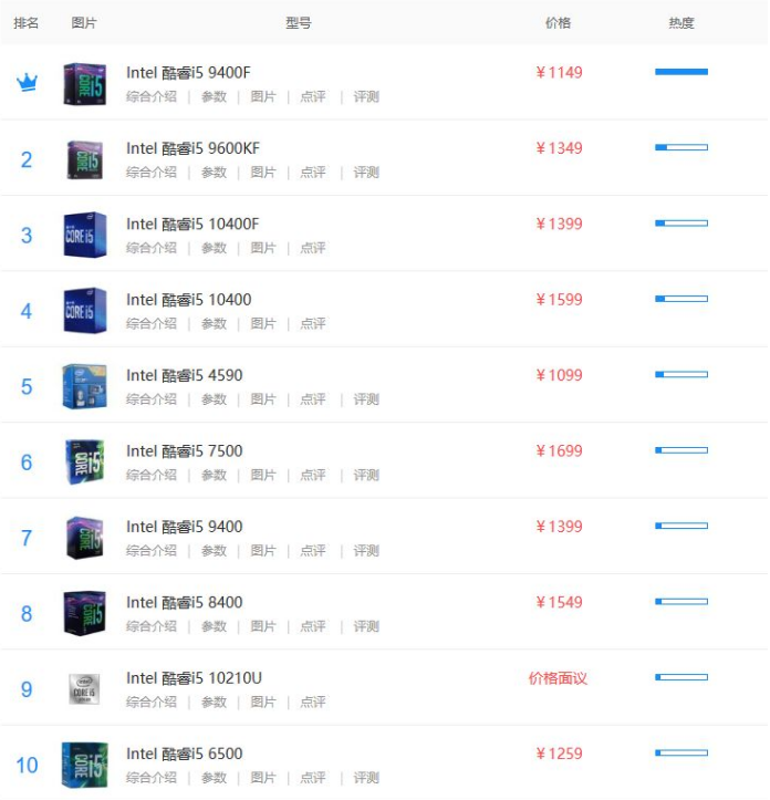 2021/08/12 酷睿i5排行榜酷睿处理器酷睿处理器i5型号排行