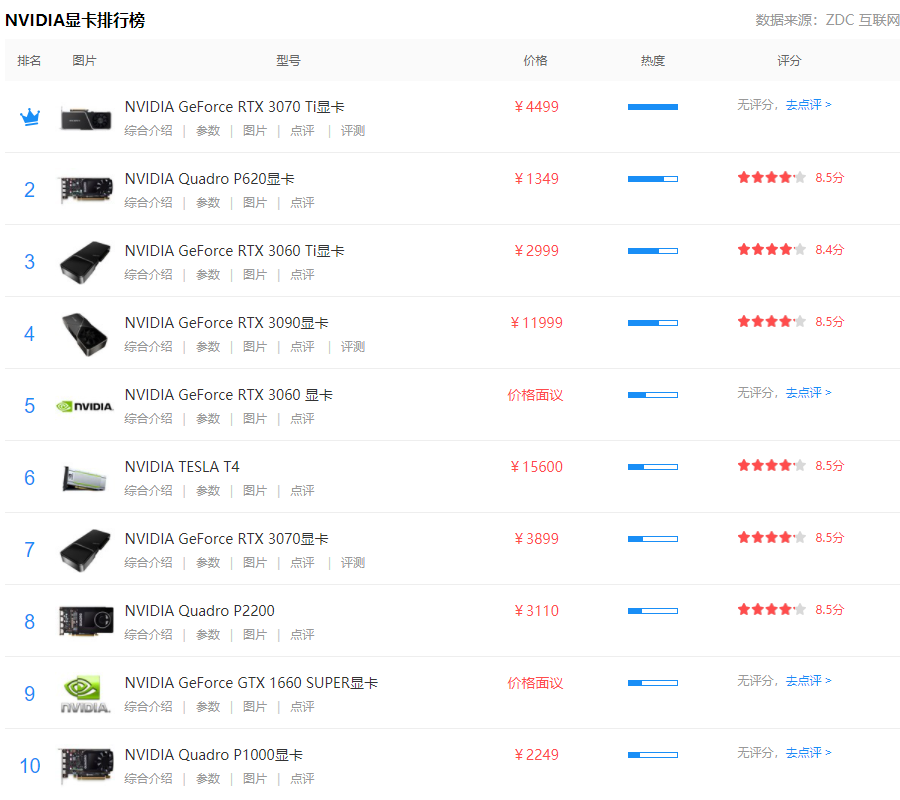 2021最新的NVIDIA显卡排行榜前十推荐