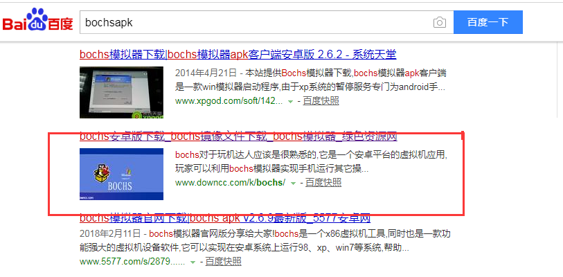 1,进入百度输入“bochsapk”然后点击搜索之后,如图操作。