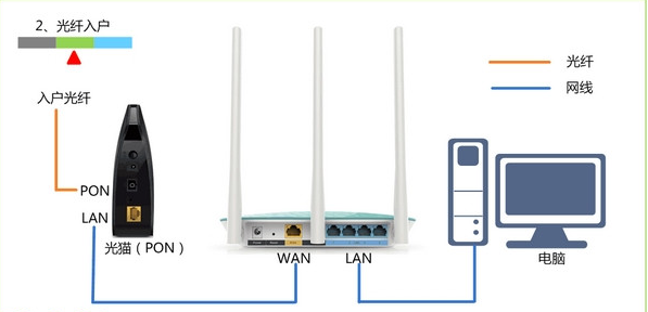 1.首先将路由器光猫,电脑相连接,具体操作见下图。