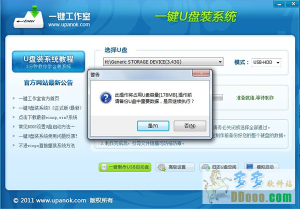 3、安装一键U盘装系统软件,开始制作启动盘,画面如下图,插入u盘,点击“一键制作usb启动盘”按钮后便开始为你制作启动盘。